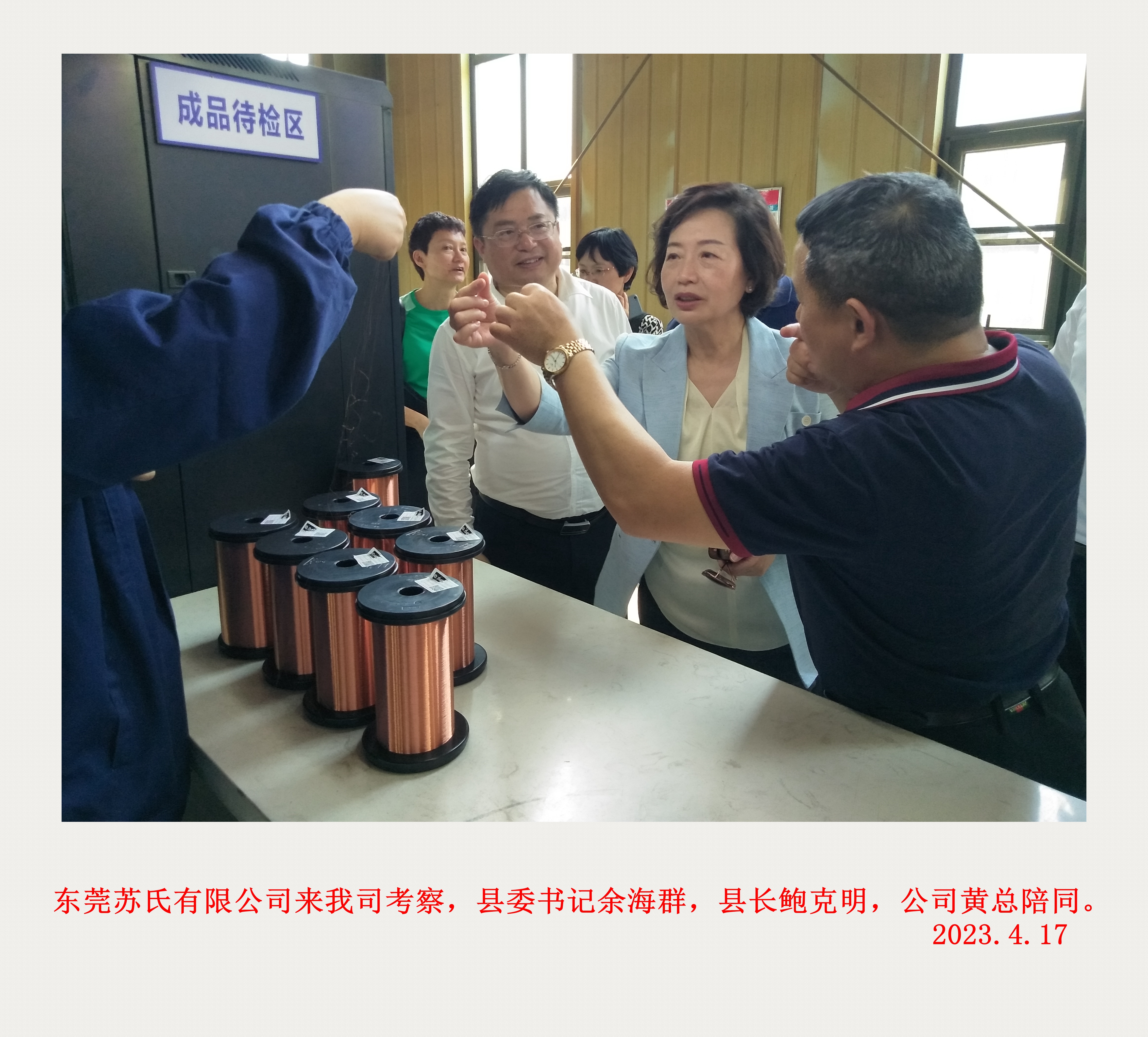 2023年4月17日 東莞蘇氏衛(wèi)生日用品有限公司考察團(tuán)來我司考察,孝感市委常委、組織部長杭鶯,縣委書記余海群,縣委副書記、縣長鮑克明,公司黃總陪同。